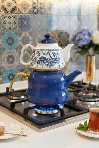 کتری و قوری گلدار آبی